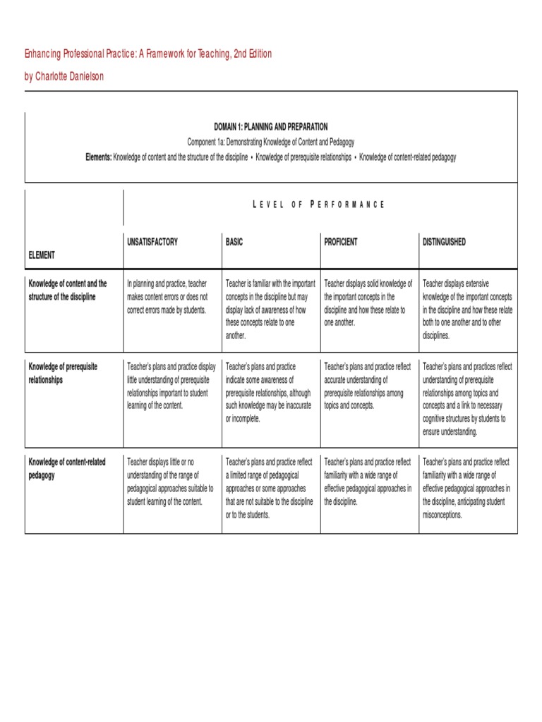 Web this resource supports teachers and school leaders with identifying next steps for a priority area connected to danielson's framework for teaching (fft) component 1a:. It was, in many ways, the first of its kind and has stood the test of time. Rubrics in the danielson collection have an. Web the danielson framework for teaching was developed by charlotte danielson.