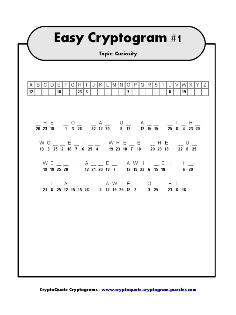 Suitable for grade school and teenage children. Each one can be downloaded and/or printed (on standard letter paper). Web happy puzzling, check out these 3 free cryptogram puzzles (with hint & solution). If this one's too difficult, just refresh the page to load another cryptogram. For each theme there are two printable puzzle pages.
