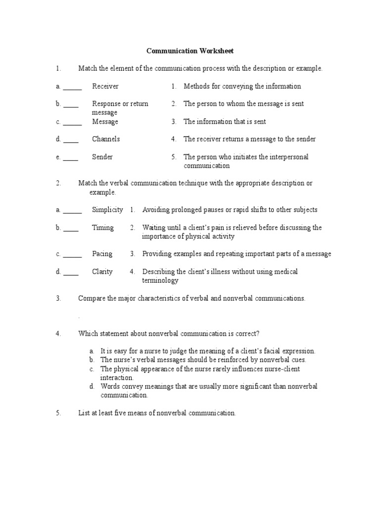 Communication Worksheet PDF Interpersonal Communication Nonverbal