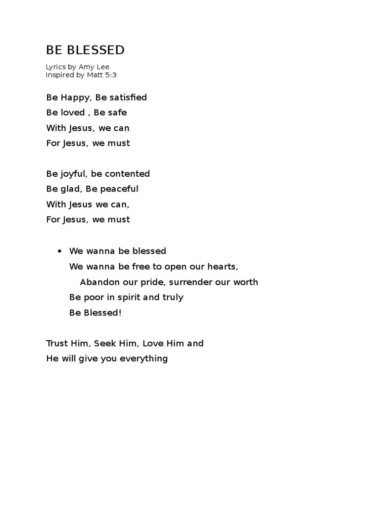 BE BLESSED Theme Song Lyrics Theology Religious Behaviour And